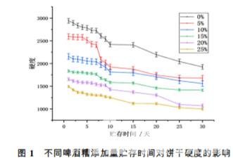 2. 1 啤酒糟添加量對餅干硬度的影響
