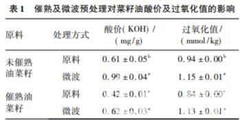 2. 1 催熟及微波預處理對菜籽油理化性質(zhì)及脂肪 酸組成的影響