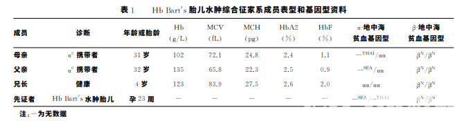 夫妻雙方的血液學結果均為小細胞 低色素貧血。Hb分析結果正常或偏低。見表1。