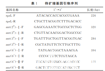 采用 PCR檢測(cè)4種氨基糖苷類修飾酶基 因ant(2″)-Ⅰ、ant(3″)-Ⅰ、anc(6′)-Ⅰ和anc(6′)-Ⅱ。